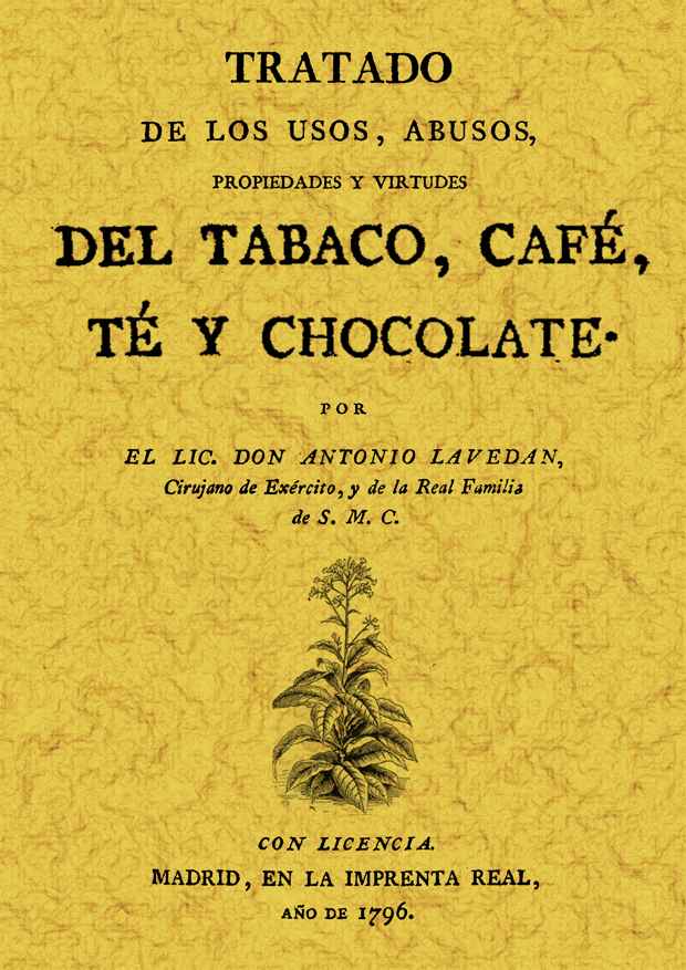 Tratado de los usos y abusos, propiedades y virtudes del tabaco, café, té y chocolate extractado de los mejores autores que han tratado de esta materia, a fin de que su uso no perjudique a la salud, antes bien pueda servir de alivio y curación de muchos males.