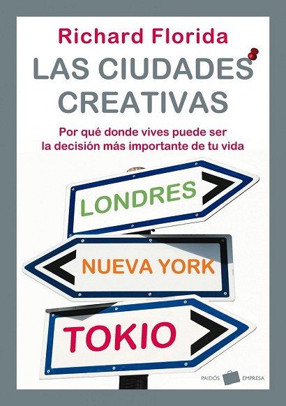 En la era de la globalización parece una obviedad decir que no importa dónde vivamos, porque podemos trabajar indistintamente desde un chalet en Aspen, desde una casa en Provenza o desde una oficina en Chicago. Pero según el reconocido escritor Richard Florida éste es un planteamiento falso. El lugar en el que vivimos afecta a todos y cada uno de los aspectos de nuestra vida: a quién conocemos, los «mercados afectivos» de los que formamos parte y los empleos, redes sociales y carreras profesionales a que tenemos acceso. Las ciudades creativas es el fruto de más de veinte años de investigación y demuestra que el verdadero motor de la economía global es una nueva unidad económica, la megarregión. A la pregunta de cuáles son las decisiones más importantes que hay que tomar en la vida, la mayoría de personas alude a la profesión y a la persona con la que compartirán la vida. Sin embargo, hay otro factor que influye enormemente en nuestra vida y condiciona nuestra vida laboral y personal: el lugar donde vivimos. A pesar de la era globalizada en la que vivimos, la ubicación geográfica es mucho más importante de lo que nunca había sido. Las ciudades cada vez se especializan más, se diferencian. En lo que se refiere a su carácter económico y a su mercado laboral. Esto afecta directamente a la calidad de vida que proporcionan y al tipo de gente que vive en ella. Además, vivimos en una sociedad muy móvil, esto quiere decir que la mayoría de personas tiene la capacidad de decidir dónde quiere vivir.