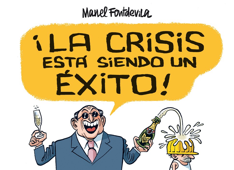 A través de las viñetas realizadas cotidianamente para el diario Público desde el comienzo de la crisis, Manel Fontdevila disecciona con humor y precisión de cirujano las causas de la actual situación económica y nos explica por qué y para quién está siendo un éxito.