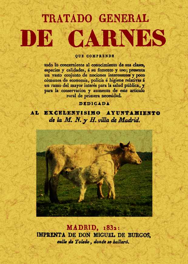 Tratado general de carnes que comprende todo lo concerniente al conocimiento de sus clases, especies y calidades, á su fomento y uso; presenta un vasto conjunto de nociones interesantes y poco comunes de economía, policía e higiene relativas á un ramo del mayor interés para la salud pública, y para la conservacion y aumento de este artículo rural de primera necesidad. Contiene un amplio catálogo bibliográfico ordenado alfabéticamente.