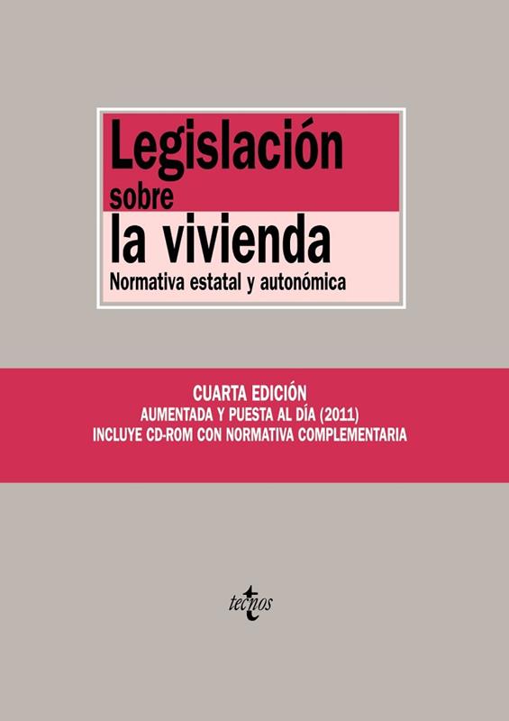 Esta cuarta edición de la ?Legislación sobre la vivienda?, ampliada, puesta al día y acompañada con un CD-Rom complementario, vuelve a sus orígenes, o sea, a la organización de su contenido con la incorporación de la normativa esencial promulgada por las Comunidades Autónomas, para lo cual se ha tenido que adoptar un formato mayor. El contenido de la presente edición, cerrada en enero de 2011, tiene en la actualidad la siguiente estructura: