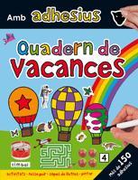 El "Quadern de vacances" és un llibre ple de divertides activitats amb adhesius. Els coneixements són variats i divertits: dinosaures, animals, formes, colors... tot amanit amb activitats lúdiques i entretingudes: mots encreuats, sopes de lletres, pàgines per dibuixar lletres per resseguir i molts adhesius per enganxar! Un llibre fantàstic per a omplir els llargs dies de vacances escolars.