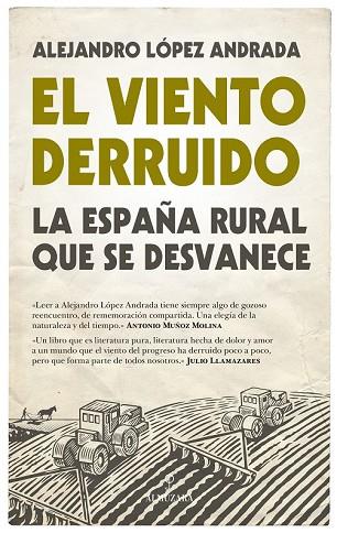 "El viento derruido" es un emocionante tributo a un mundo en trance de extinción, del que procedemos, pero que se desdibuja de nuestra memoria y realidad. Por eso es necesario conocerlo, sentirlo, revivirlo. Escrito en un tono poético y evocador, este libro es la crónica de una destrucción íntima y emotiva: la devastación de la cultura rural y la transformación de nuestros pueblos en pequeños islotes de soledad donde el tiempo parece embalsamado en una vitrina habitada por el recuerdo, en la que aún reverberan ecos y signos del ayer. El celebrado autor de El Libro de las Aguas o Los perros de la eternidad abandona aquí los géneros tradicionales e indaga de manera magistral en un género mestizo en el que aúna ensayo, periodismo e investigación histórica. Alejandro López Andrada, con la maestría que le acredita como uno de los autores españoles más laureados de las últimas décadas, nos sumerge en un espacio único, que impregnará para siempre la memoria del lector. Y, desde la parte, una tierra concreta, evoca al todo, el mundo rural español. Los Pedroches, en la encrucijada donde confluyen tres regiones (Andalucía, Castilla La Mancha y Extremadura) y tres provincias (Córdoba, Ciudad Real y Badajoz), es el espacio que el autor trasciende para mostrarnos el ocaso de un universo mucho mayor y reconocible por todos.