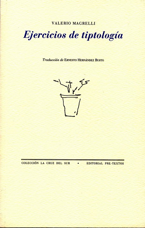 Poco de exorbitante, en efecto, encontramos en la poesía de Magrelli, que prefiere un acercamiento discreto a las cosas y a los sentidos. En sus primeros libros, Magrelli demostró ser un observador irónico de «las cosas que pueblan el mundo» (Ponge); en Ejercicios de tiptología se sirve incluso del vocabulario de las ciencias naturales, de la biología o de la geología, disciplinas poco frecuentes entre poetas. De ahí su lugar excéntrico dentro de la lírica italiana contemporánea: Magrelli no es un atleta del sentimiento, sino del ojo, ese punto de confluencia entre la materia y la percepción. Su escritura poética no mira hacia el cielo romántico: atraviesa lo mismo blancos espacios del norte de Europa, Bizancio o la noche de unos vecinos murmurantes que no dejan dormir. De estas excursiones nos queda un dictado en clave, el mismo al que se alude en el título con la raíz del verbo griego typtein, que significa «golpear para producir un sonido». Al indicar, ya sea la técnica para interpretar los golpes escandidos sobre la mesa durante las reuniones espiritistas o las señales usadas por los presos para comunicarse con leves golpes a través de las paredes, el término ?tiptología? remite no sólo a la idea de un interlocutor no visible, sino al propio lenguaje como un orbe cifrado