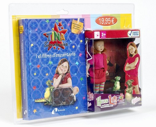 Un fantàstic pack que inclou el llibre " Tina Superbruixa i el llibre d ' encanteris " (amb fotos de la pel·lícula " Kika Superbruja y el libro de hechizos " ) i una simpàtica nina de la Tina.