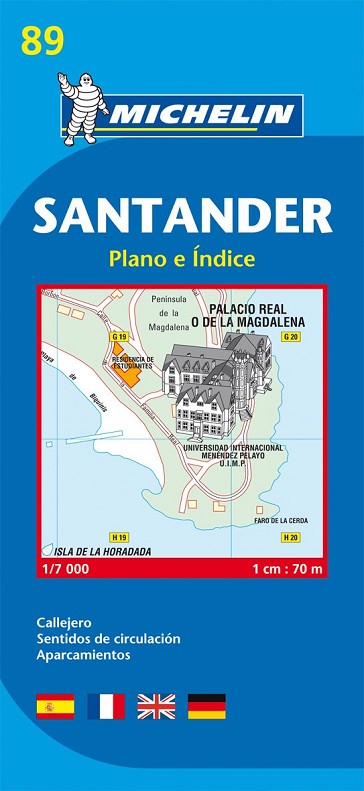Encuentre todas las informaciones prácticas para recorrer Santander a pie, en coche o en bicicleta. El plano MICHELIN Santander, a escala 1/7 000 (1cm = 70m), es ideal para recorrer los barrios de la ciudad. Para completar la información incluye: transportes, sentidos de circulación, parkings... y un anexo con el índice de todas las calles.