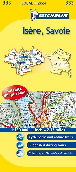 La edición actualizada del mapa Local Isère, Savoie editado a escala 1/150 000, incorpora la señalización de pistas para ciclistas, vías verdes, sugerencia de itinerarios, así como los planos de las ciudades de Chambèry y Grenoble.