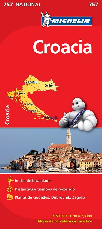 El Mapa National Croacia, editado a escala 1/750 000 y actualizado en 2012, guarda además otros interesantes contenidos, tales como los planos de la ciudades de Dubrovnik o Zagreb, índice de localidades, cuadro de distancias y tiempos de recorrido.