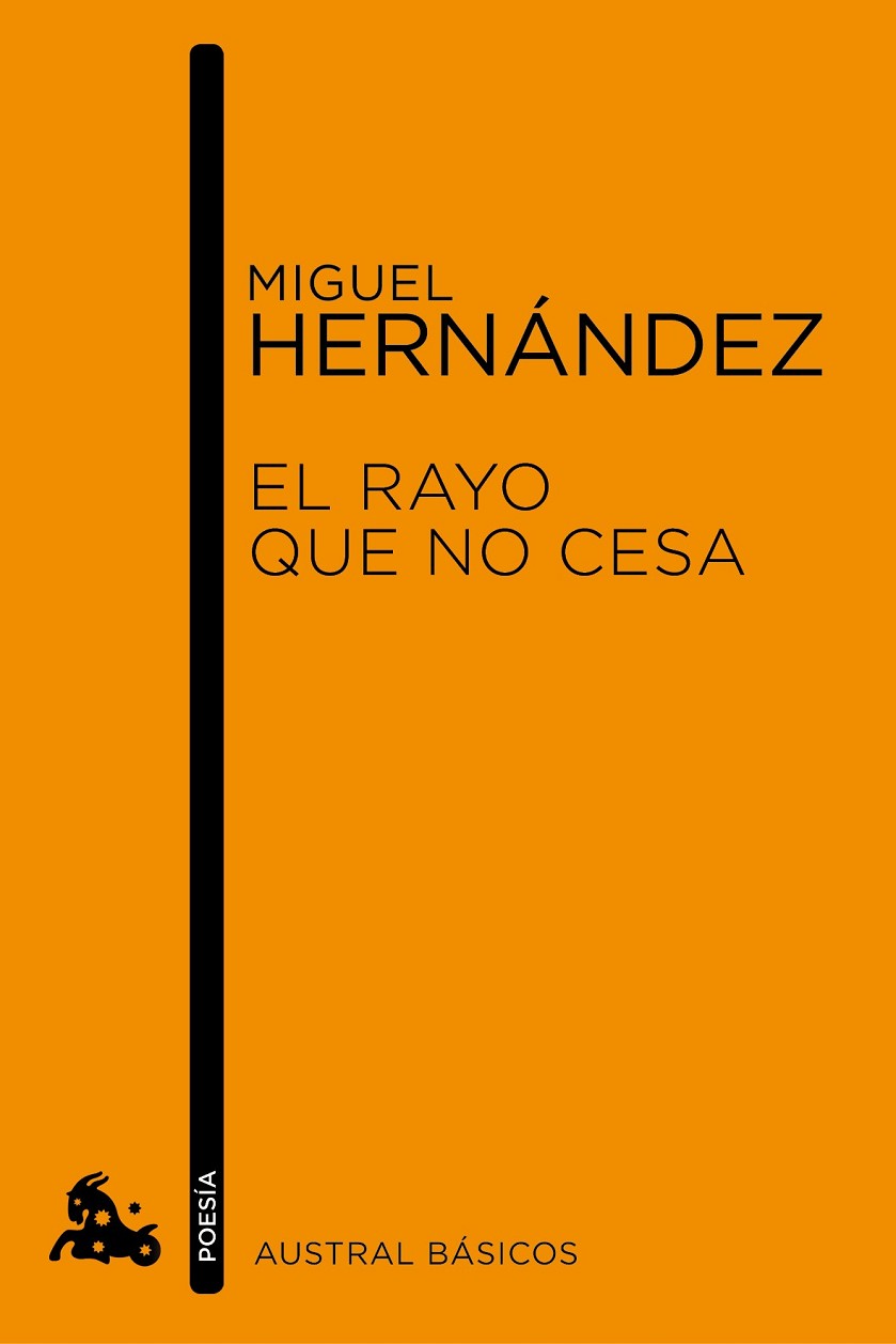 Miguel Hernández nació en Orihuela en 1910 y, condenado por su militancia en el bando republicano durante la guerra civil, murió en la cárcel en 1942. Comenzó a escribir poemas siendo pastor de cabras, pero muy pronto alcanzó su gran madurez reflejada en el libro Perito en lunas. EL RAYO QUE NO CESA, resultado y testimonio de una profunda crisis vital, es uno de los más conmovedores libros de poesía castellana. El descubrimiento del amor constituye para el autor una extraordinaria aventura poética. Empieza a explorar una nueva dimensión de su ser y descubre que amor y muerte son cara y cruz de una misma moneda. De ahí brota la vivencia básica de la pena, que rebasando los límites personales, hace al poeta cargar, solidario, con el dolor de todos los desheredados. Autor de estudios básicos para el conocimiento de la época y del poeta- La poesía entre pureza y revolución y La poesía de Miguel Hernández-, Juan Cano Ballesta ofrece en este volumen una guía segura para adentrarse en la riqueza de El RAYO QUE NO CESA, así como en los poemas de El silbo vulnerado y los publicados en la revista El Gallo Crisis que dirigió Ramón Sijé, su compañero del alma.