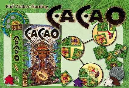 Adentraos en el exótico mundo de la fruta de los dioses. Cada jugador se convertirá en el jefe de una tribu, y tendrá que producir y vender cacao, adorar a los dioses en los templos y conseguir agua para prosperar y convertir su tribu en la más rica de la selva. Cacao es un juego rápido y fácil de aprender en el que mediante la colocación de losetas y la gestión de recursos, los jugadores deberán conseguir la mejor estrategia para ganar oro, convertirse en los más ricos y alcanzar la victoria.