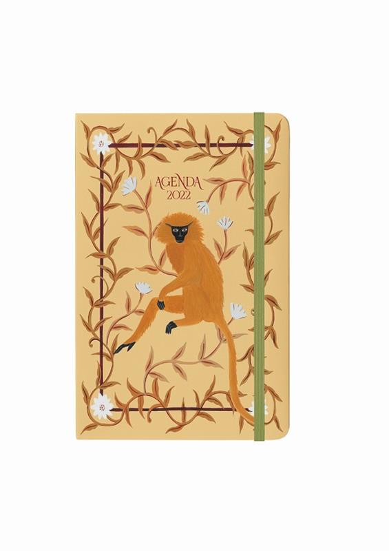 Una agenda de lujo en formato mini, disposición a semana vista, adhesivos, tacos de pósits, bolsillo interior, cinta marcapáginas, goma de sujeción, y, además, con mensaje ya que da protagonismo a los simios en peligro de extinción.