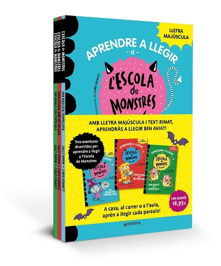 Un pack màgic amb els tres primers llibres de la sèrie més divertida per aprendre a llegir: L'ESCOLA DE MONSTRES!