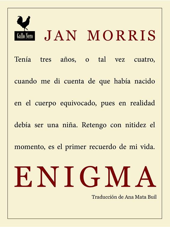 Enigma es uno de los primeros libros en plantear la transexualidad con honestidad y naturalidad. Jan Morris nos cuenta cómo decidió someterse a un tratamiento hormonal para luego enfrentarse a una arriesgada cirugía que la convertiría en la mujer que realmente era.