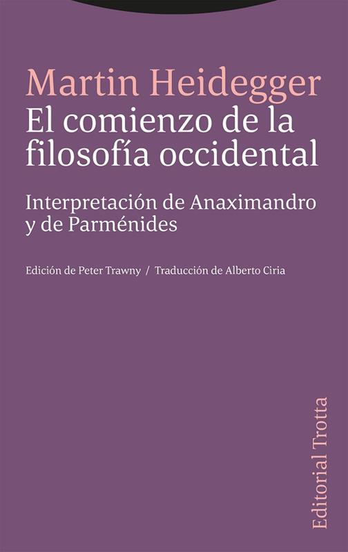 Después de «Ser y tiempo», Martin Heidegger encontró en los griegos la inspiración de su «camino del pensar». No solo rememoraba así la vuelta a Grecia de un Friedrich Hölderlin, sino que adoptaba el gesto radical de Friedrich Nietzsche, quien buscó recuperar la filosofía trágica de los griegos anterior a Sócrates. En los presocráticos verá también Heidegger esa alba de la filosofía cuya comprensión del mundo y del lenguaje fue olvidada por la metafísica occidental. Las lecciones aquí editadas fueron impartidas en el semestre de verano de 1932. En ellas, al hilo de los fragmentos, se da una interpretación de dos de los pensadores presocráticos más significativos en «el comienzo de la filosofía occidental». La célebre «Sentencia de Anaximandro» y el no menos famoso «Poema de Parménides» son textos fundacionales del discurso filosófico en los que ocupan un lugar central, por primera vez, nociones como Justicia, Verdad o Ser.