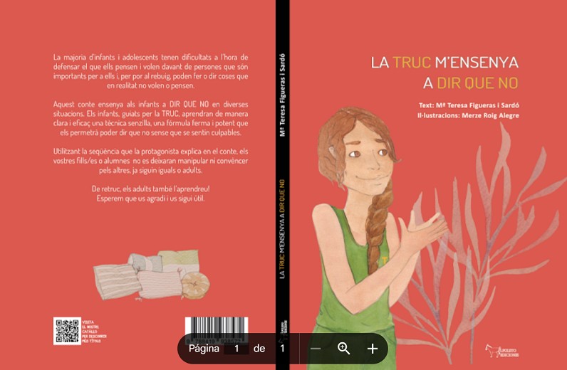 Aquest Conte ensenya als infants a DIR QUE NO en diverses situacions. Els infants, guiats per la TRUC, aprendran de manera clara i eficaç una tècnica senzilla, una fórmula ferma i potent que els permetrà poder dir que no sense que se sentin culpables. Utilitzant la seqüència que s’explica en el conte, els vostres fills i filles no es deixaran manipular ni convèncer pels altres, ja siguin iguals o adults.