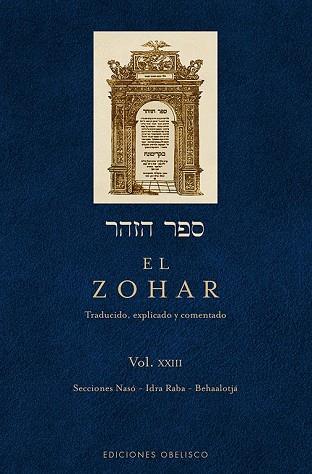 El volumen XXIII incluye el texto del Idra Rabba Kaddisha, la gran asamblea santa, que algunos consideran el corazón del Zohar. Rabbí Shimon comparte con nueve de sus estudiantes los misterios más profundos de la cábala, del mismo modo que la sefirah de Keter comparte su luz con las nueve sefirot inferiores